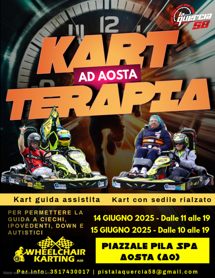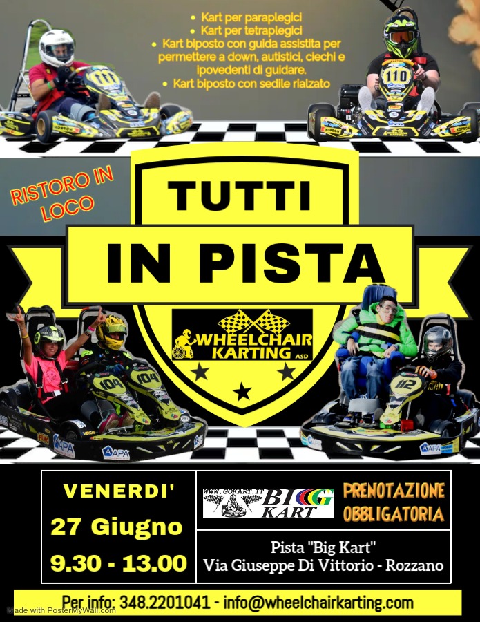 Vieni a divertirti con noi in Pista a Rozzano!! Giornata dedicata ai go-kart adattati alla guida per paraplegici e tetraplegici. Per partecipare all’evento è necessaria