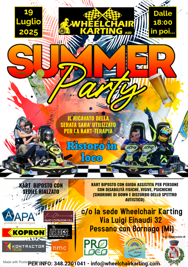 In occasione della festa estiva si svolgerà un evento di kart-terapia nel piazzale antistante la nostra sede! Sarà una bellissima occasione per salutarci e augurarci